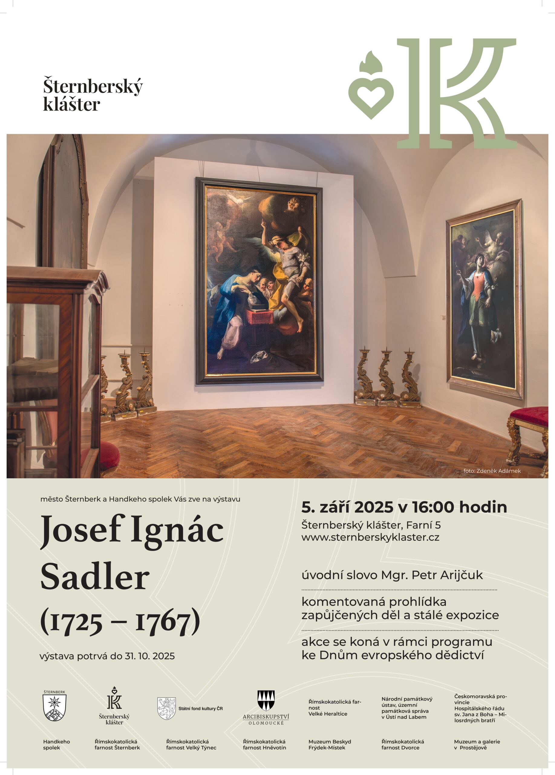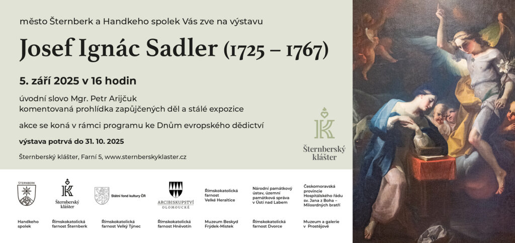 V pátek 5. září 2025 Vás zveme na už tradiční Dny evropského dědictví do Šternberského kláštera! Letošní ročník bude zaměřen na Josefa Ignáce Sadlera, významného barokního malíře, od jehož narození letos uplynulo 300 let.